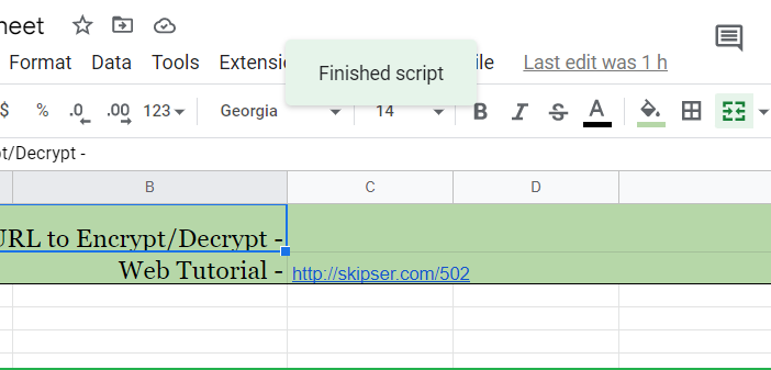 Malý rámeček označený Dokončený skript označuje, že skript byl inicializován. Nyní jsme připraveni přidat obsah do této tabulky a zašifrovat ji.